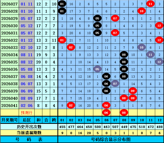 后区分析【一区01-04,二区05-08,三区09-12】:上期后区奖号为02和06,分别落在第一、二区,近50期后区三区比为28:44:28,近10期三区比为3:11:6,本期重防第二区号码大热,精选两码06+08。